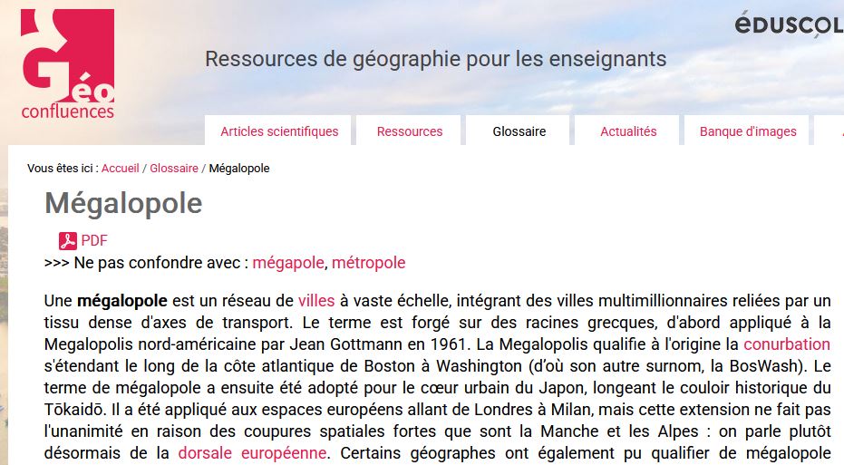 Ger savet diàr gwrizioù gresian , da gentañ implijet evit komz eus ar Megalopolis norzh-amerikan get J. Gottmann en 1961.