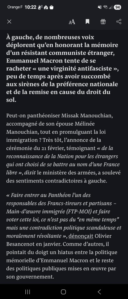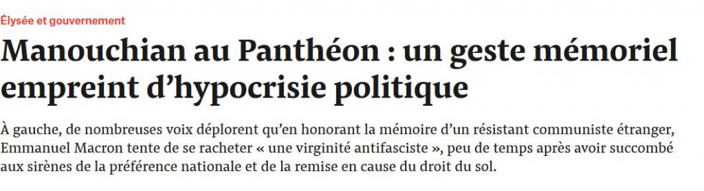 Mare 2 :obidoù ar c’houblad Manouchian er Panteon : ur bazenn e-barzh diorren un danevell republikan nevez ?